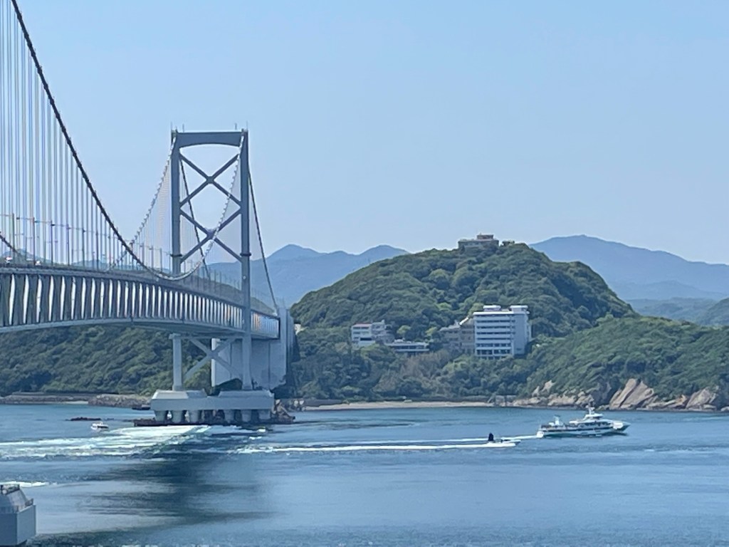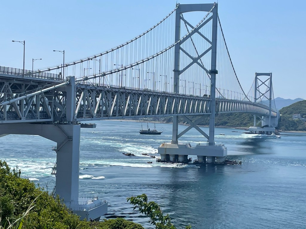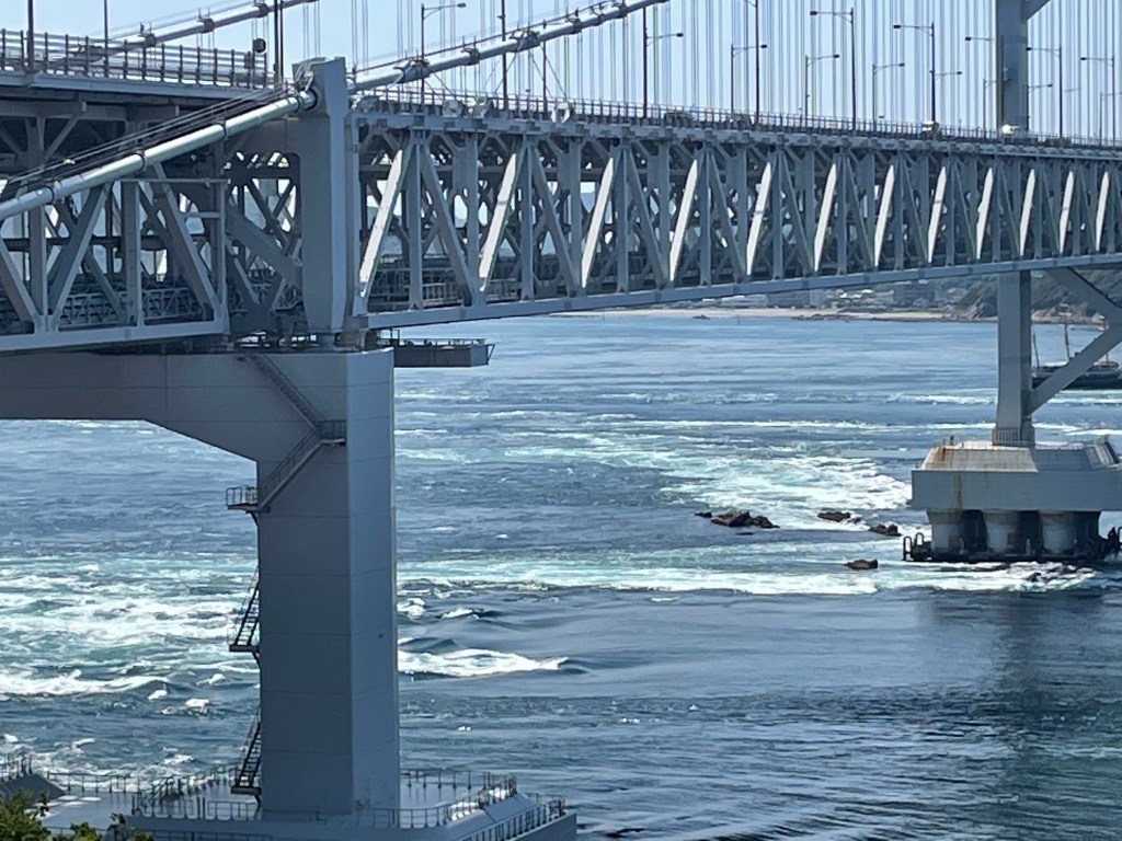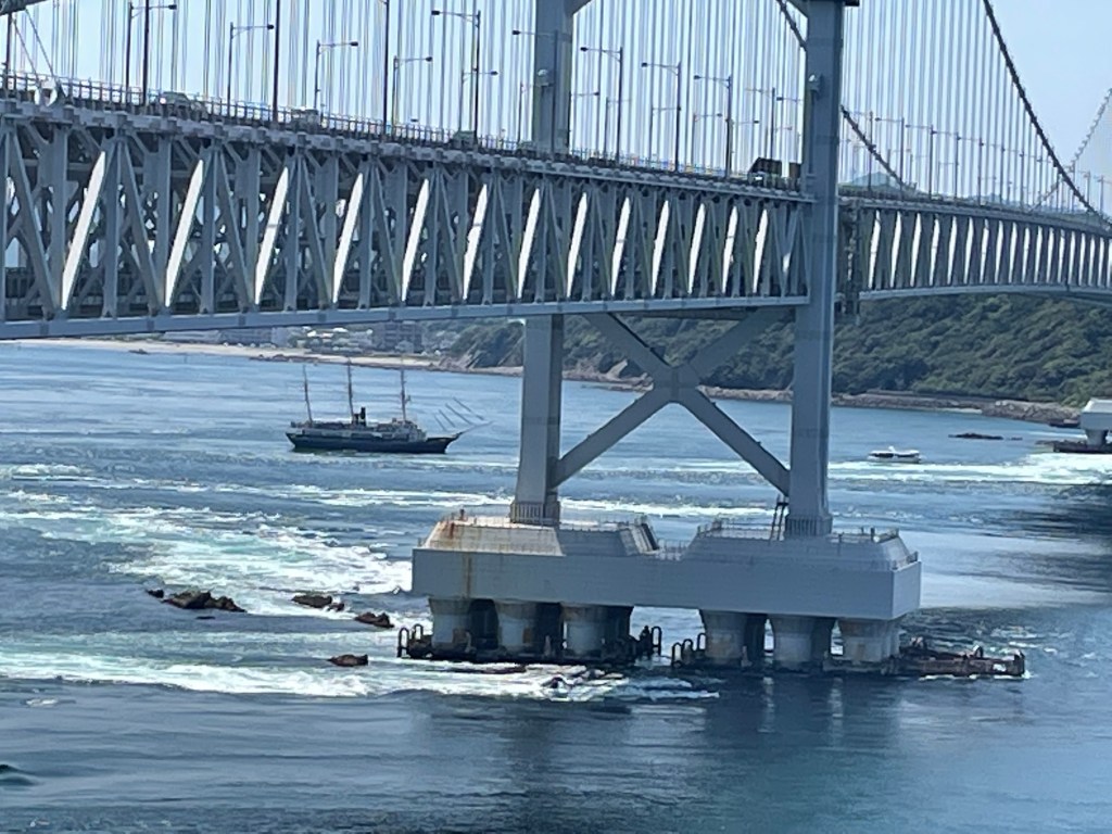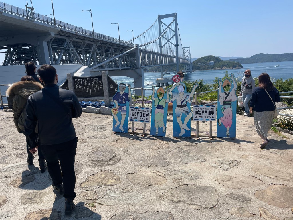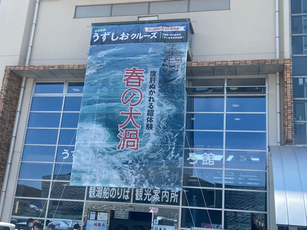 来ましたよ、鳴門の渦潮でも見えないんですね。ちょっと寂しいなぁ。でもお昼でお腹空いたからお店で何か食べようと思ったら何処も行列です。なので、